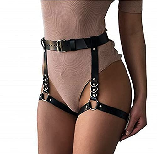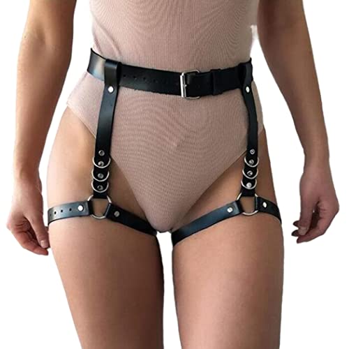 Edary - ايداري سلسلة خصر من الجلد بتصميم بانك بلون اسود، سلسلة بطن قابلة للتعديل، اكسسوارات مجوهرات للجسم للنساء والفتيات