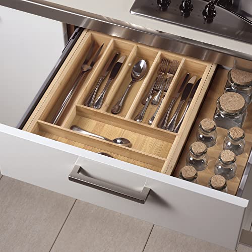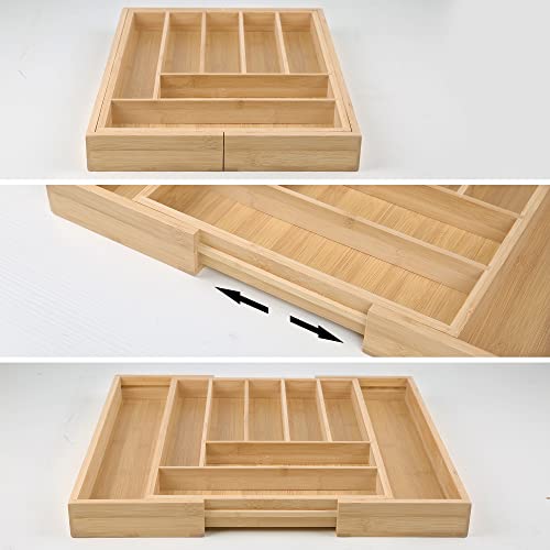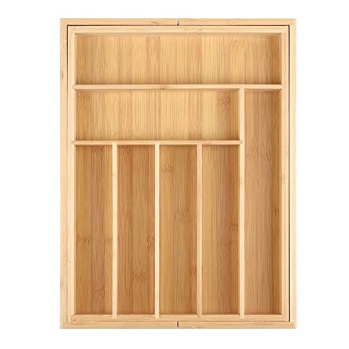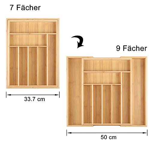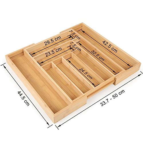 Edaygo - صينية أدوات تناول الطعام من ايدايجو، منظم أدراج خيزران بمقاس قابل للتعديل فيه 7-9 مساحات تخزين 33.7-50×44.5×5 سم (عرض×طول×ارتفاع)