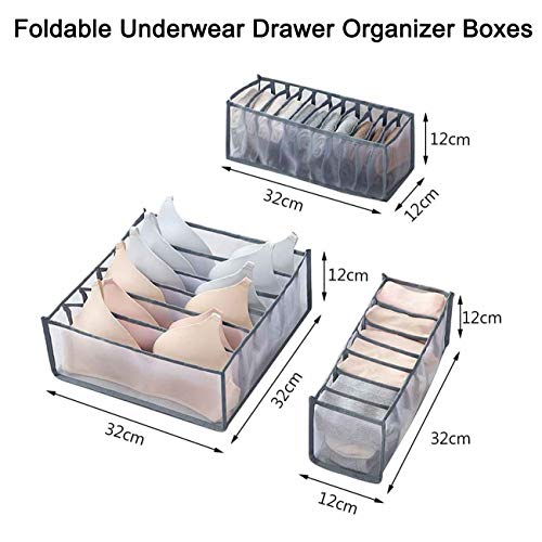 EddHomes - منظم ادراج الملابس الداخلية من ادهومز درج حمالة الصدر قابل للطي والملابس للنساء للملابس وحمالات والشرابات- رمادي-3 قطع