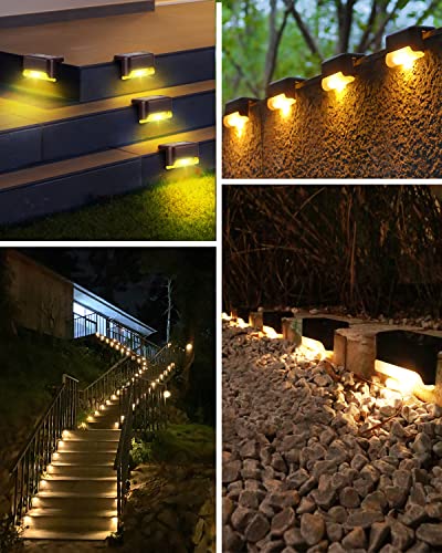 EDDORUNNING - مصابيح خارجية تعمل بالطاقة الشمسية من ايدورونينج، مصابيح شمسية خارجية للفناء بلون بني، مصابيح ليد مقاومة للماء للسلالم الخارجية والسطح والفناء والسور (أبيض دافئ)، 8 قطع