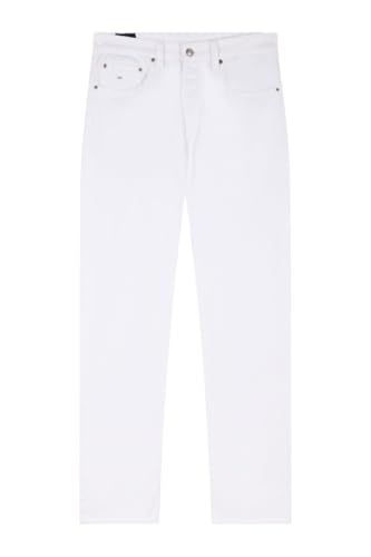 Eden Park - بنطلون جينز بقصة مستقيمة للرجال من ايدن بارك، لون ابيض قابل للتمدد، 5 جيوب