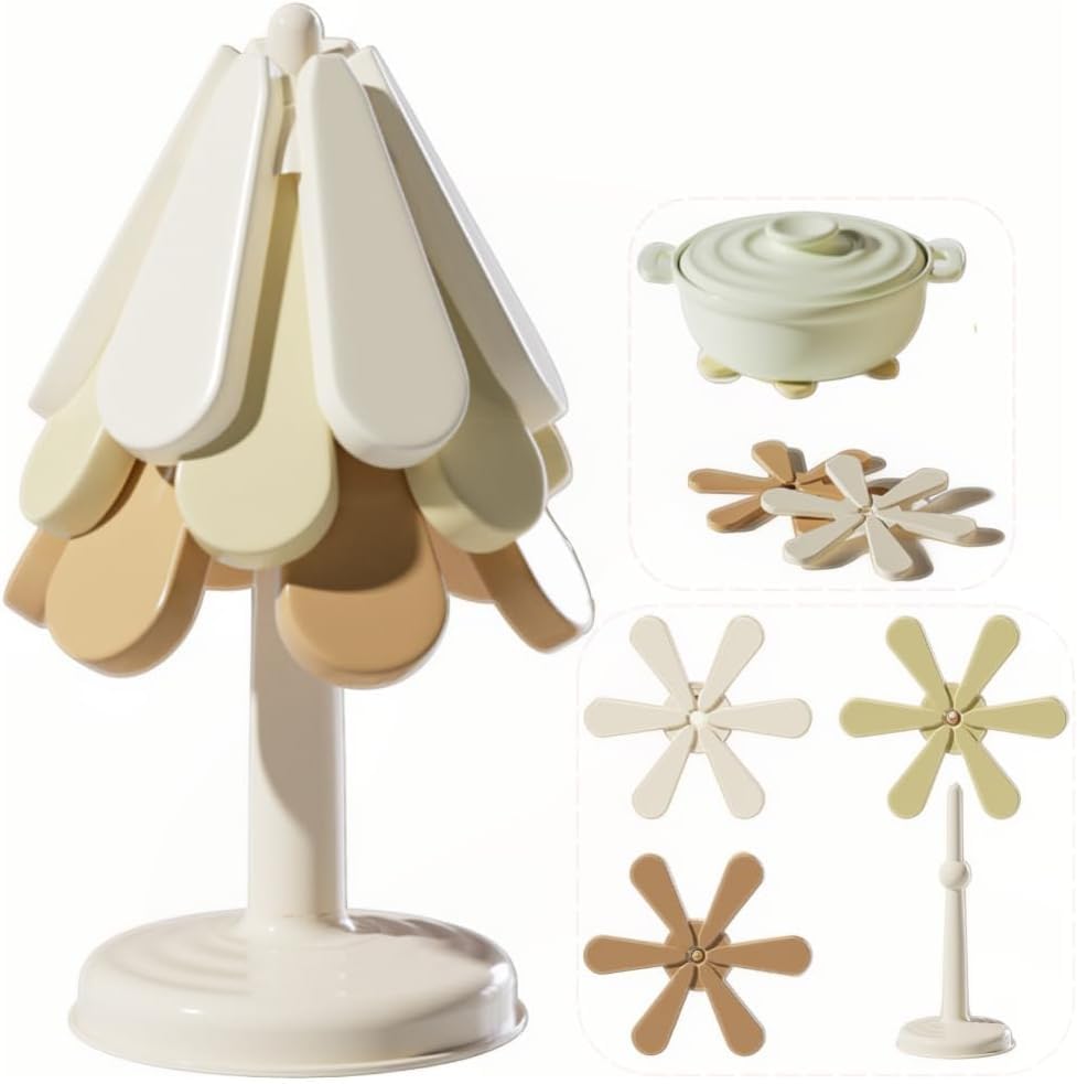 generic - قواعد أكواب بتصميم شجرة الكريسماس من ايدينكو: حامل أواني دائرية قابلة للطي ومقاومة للحرارة ومقاومة للماء وصديقة للبيئة للأطباق الساخنة والمشروبات