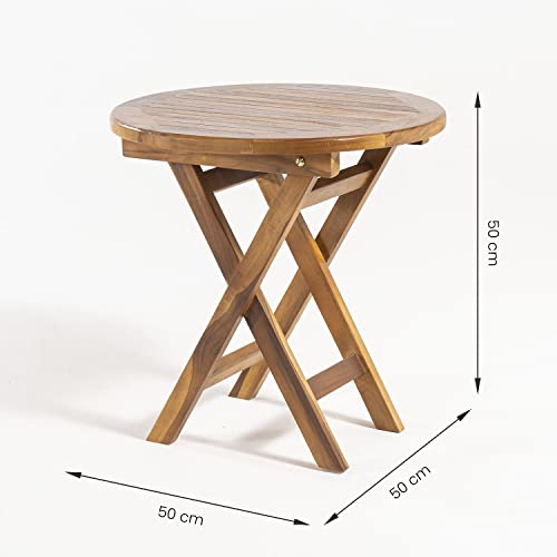 Edenjardi - طاولة جانبية من خشب الساج دائرية الدرجة ايه مقاس 50 × سم معالجة المياه شرفة قابلة للطي