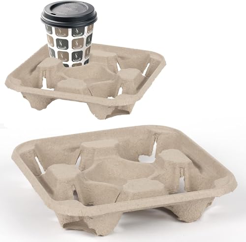 Edenpack - حامل أكواب من اللب المقولب للمشروبات الساخنة والباردة، حامل أكواب من الفايبر للاستعمال مرة واحدة للقهوة والشاي والوجبات الجاهزة (10)