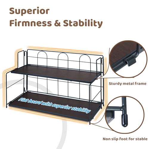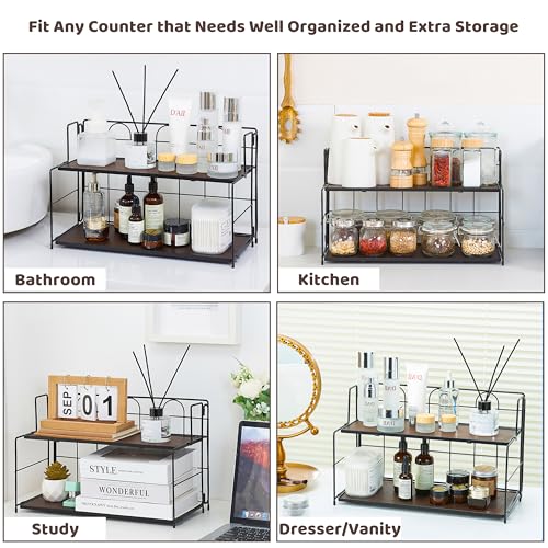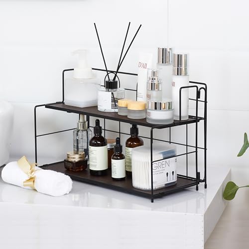 Edergoo - منظم منضدة الحمام، منظم حمام من طبقتين للتخزين، منظم حمام قابل للطي، بدون تركيب، منظم خشبي للحمام والمطبخ وخزانة الملابس، اسود