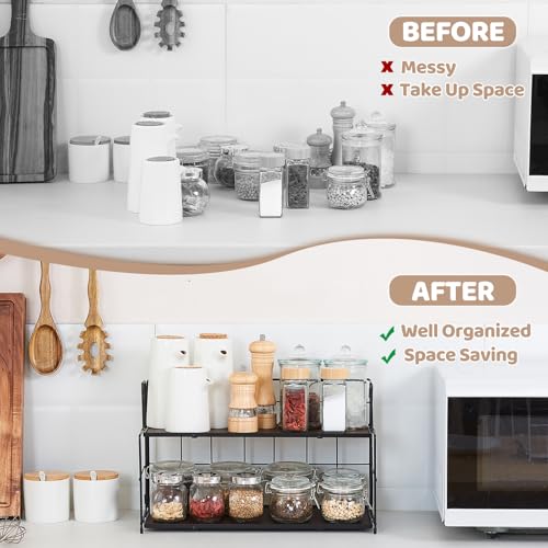 - زيادة مساحة سطح الطاولة: يوفر منظم الحمام المكون من طبقتين مساحة تخزين واسعة لبرطمانات التوابل وأدوات النظافة ومستحضرات التجميل وأكثر من ذلك دون أن يشغل مساحة كبيرة على الطاولة.