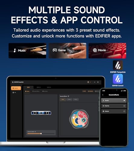 - 【تأثيرات صوتية وتطبيقات متعددة】استمتع بأداء صوتي غامر يلائم احتياجاتك، مع ثلاثة تأثيرات صوتية جاهزة تضمن لك أفضل تجربة استماع للموسيقى والأفلام والألعاب. ما عليك سوى تنزيل تطبيق ايديفاير كونكس للموبايل أو تطبيق كمبيوتر ايديفاير تيمبوهب لتحديد الوضع المفضل لك وفتح الميزات الإضافية (استخدام اللغة العربية غير مؤكد).