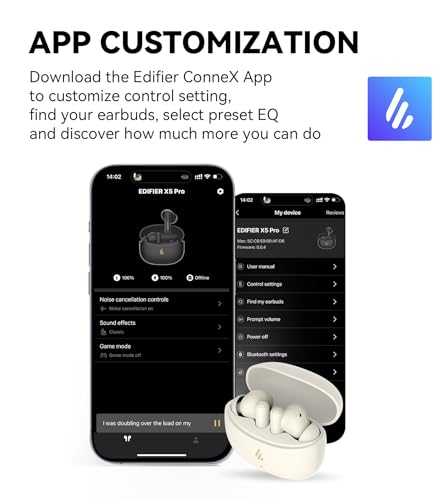 - تعديل التطبيق: قم بتحميل تطبيق ايدي فاير ConneX للاستفادة من جميع الميزات، مثل ضبط إعدادات التحكم، البحث عن سماعات الأذن، اختيار إعدادات المعادل المسبقة، والاستمتاع بالموسيقى بالطريقة التي تفضلها.