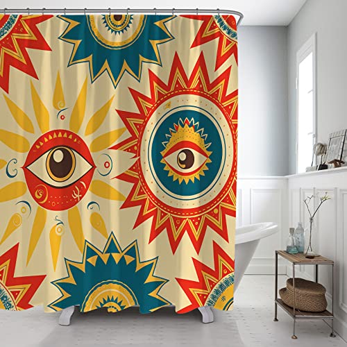 EDMER - مجموعة ستارة حمام من ايدمر استحمام مصنوعة قماش بوليستر بنمط بوهو وزهور وزهرة عباد الشمس وفراشات وحيوانات لديكور الحمام رائحة الزهور
