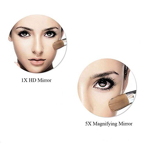 - ؟مرآة مزدوجة الجانب 1X/5X: أحد الجانبين عبارة عن مرآة قياسية والجانب الآخر عبارة عن مرآة مكبرة 5 أضعاف تسمح لك برؤية ملامح وجهك بوضوح وصنع مكياج مثالي في المناطق المظلمة أو ذات الإضاءة السيئة