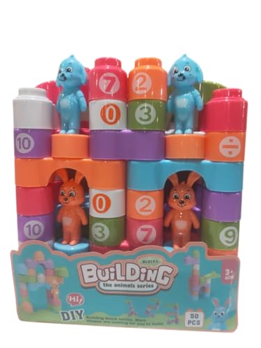 Generic - مكعبات بناء تعليمية للأطفال "سلسلة الحيوانات" - 50 قطعة ملونة مع أرقام ورموز حسابية وشخصيات حيوانات لطيفة - لتنمية مهارات الفك والتركيب والإبداع للأعمار 3 سنوات فما فوق