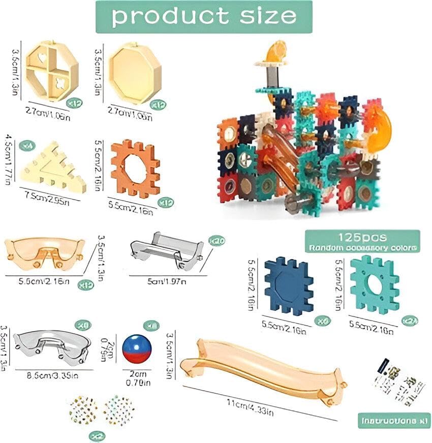 Generic - مجموعة العاب تعليمية - 128 قطعة من مجموعة بناء مسار الكرة والعتاد لتنمية الدماغ والتفكير الابداعي
