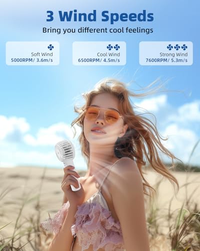 - 🍨【3 سرعات قابلة للتعديل】تحتوي المروحة الصغيرة المحمولة باليد على 3 سرعات رياح قابلة للتعديل، والتي يمكن تبديلها بسهولة عن طريق الضغط على زر التشغيل. السرعة المنخفضة توفّر نسمة هواء ناعمة بسرعة دوران تبلغ 5000 دورة في الدقيقة تقريبًا، وتدفق هواء حوالي 3.6 م/ث، أما السرعة المتوسطة فتمنحك هواءً منعشًا عند 6500 دورة في الدقيقة وتدفق 4.5 م/ث، في حين أن السرعة العالية توفر ريحًا قوية بسرعة 7600 دورة في الدقيقة وتدفق يصل إلى 5.3 م/ث. هذه المروحة الصغيرة المحمولة هي شريك جيد في الصيف الحار.