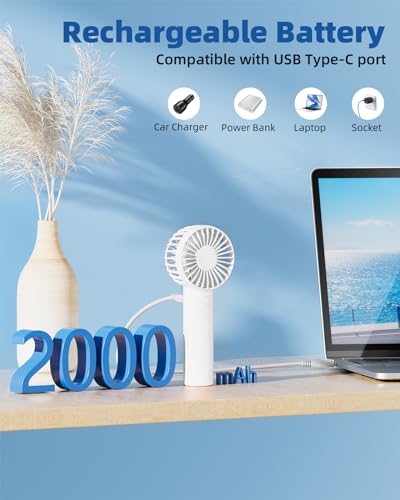 - 🍨【بطارية قابلة لإعادة الشحن】يتم تشغيل المروحة الشخصية ببطارية مطورة قابلة لإعادة الشحن بسعة 2000 مللي امبير في الساعة مع أداء وكفاءة عالية، مما يوفر ما يصل إلى 8.5 ساعات من وقت العمل. تأتي مع كابل شحن يستغرق 3 ساعات فقط للشحن الكامل، يمكنك شحنها بواسطة المقبس أو الباور بانك أو الكمبيوتر أو أي جهاز آخر يحتوي على منفذ USB.