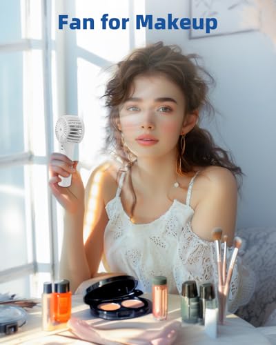 Edvision - مروحة صغيرة محمولة باليد قوية محمولة 3 سرعات قابلة لإعادة الشحن بمنفذ USB تعمل بالبطارية من ايدفيجن، مروحة مكياج بتصميم لطيف للبنات والنساء والأطفال في الهواء الطلق، لون أبيض