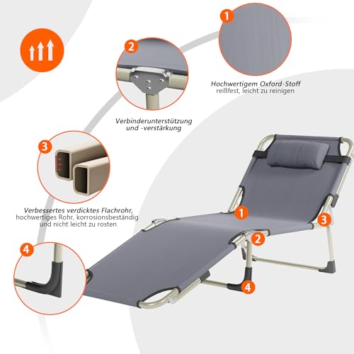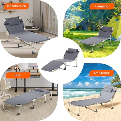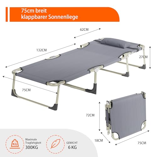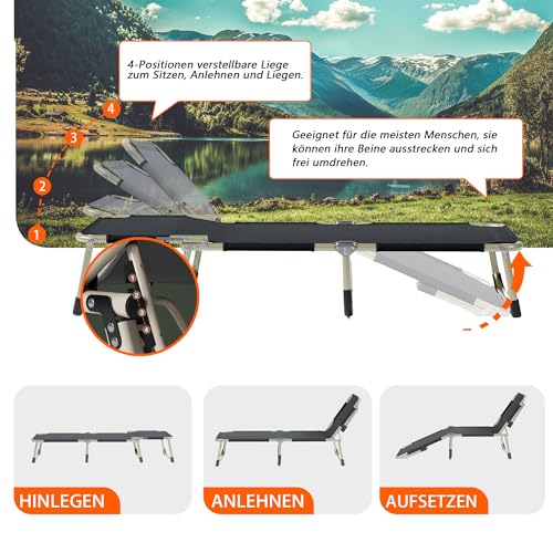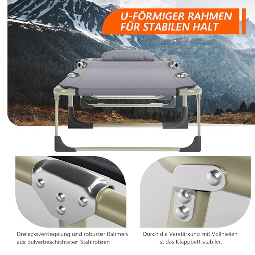 EDWINENE - سرير تخييم قابل للطي حتى 300 كجم من ايدوينين، كرسي تخييم قابل للطي للبالغين في الاماكن المغلقة والمفتوحة والحديقة والتخييم والسفر (194 × 75 سم، رمادي)
