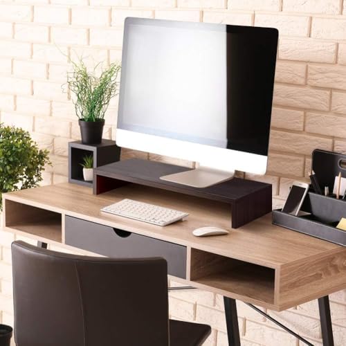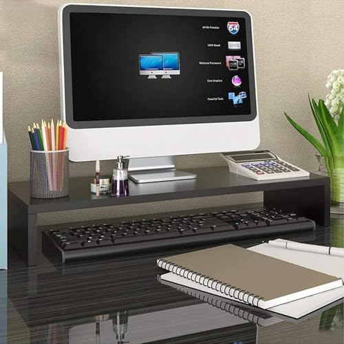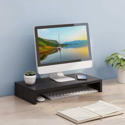 EETU - حامل شاشة من اي تي يو - حامل خشبي من طبقة واحدة لتنظيم سطح المكتب والكمبيوتر والتلفزيون وحامل رف حامل منظم لسطح المكتب (أسود)