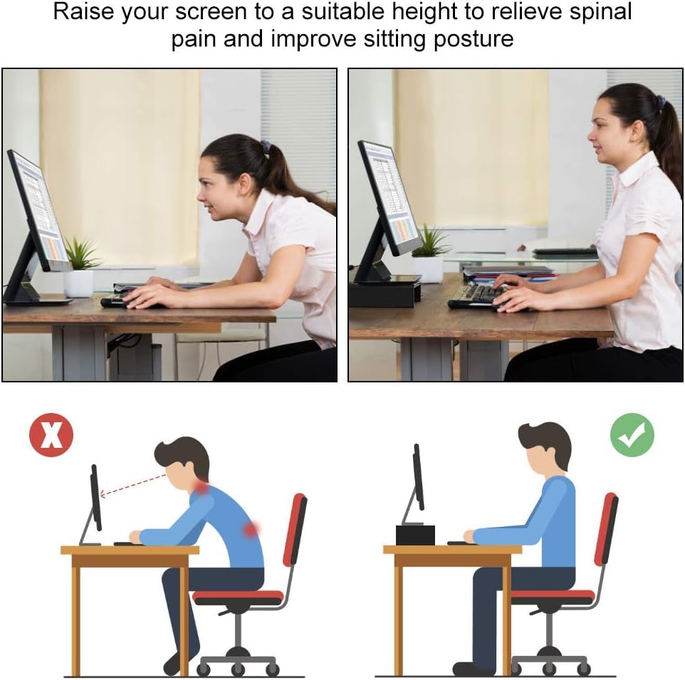 - وظائف متعددة: يهدف حامل الشاشة إلى تنظيم لوازم مكتبك وتوفير المساحة مع تقليل التعب الجسدي والحفاظ على غرفتك ومرتبة. حرك لوحة المفاتيح والماوس أسفل حامل الشاشة لجعل مكان عملك منظمًا جيدًا.