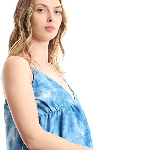 EEZEEY - فستان شاطئ بنمط مصبوغ بنظام الربط برقبة عميقة على شكل حرف V وحمالات رفيعة للنساء من ايزي