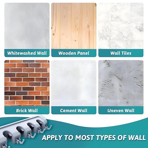 Generic - منظم تنظيف فعال - مكنسة مثبتة على الحائط وحامل ممسحة مع 5 فتحات قابلة للتعديل و 6 خطافات ، مصممة للتخزين الأمثل لمعدات المطبخ والحديقة. (قطعتين)