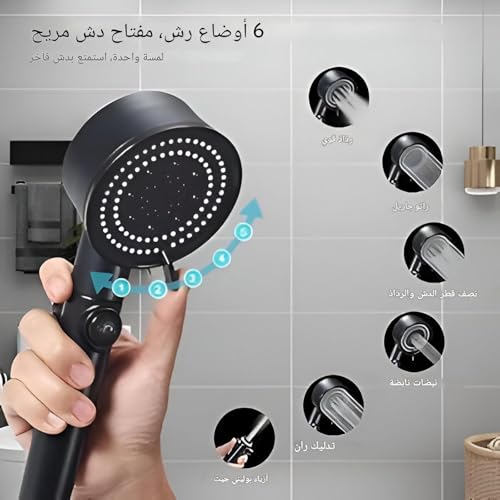 - يتميز برأس دوار 360 درجة مع ستة مستويات ضغط مياه قابلة للتعديل، ما يمكن المستخدمين من تخصيص تجربة الاستحمام بضغط مياه لطيف أو قوي، في حين أن التصميم سهل التركيب يناسب أي خرطوم قياسي دون الحاجة إلى أدوات أو تركيب احترافي.
