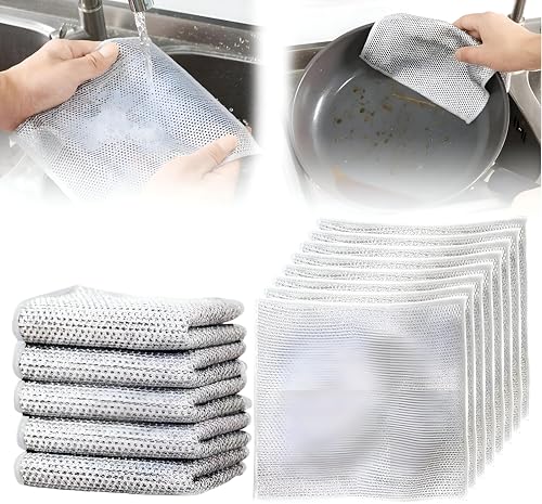 Generic - قماش سلكي فعال لغسل الأطباق والأكواب، رائع للاستخدام الرطب والجاف - مزدوج الطبقات، متعدد الوظائف، مقاوم للخدش (مجموعة من 5 قطع), الآن فى 🏡 البيت الانيق، فضي