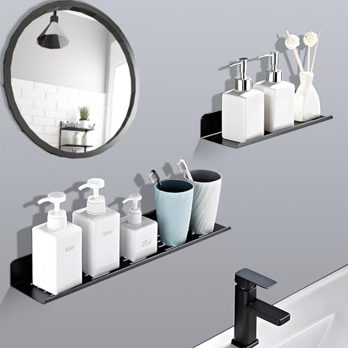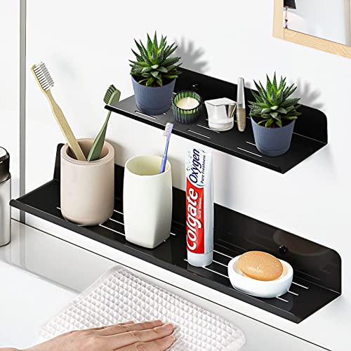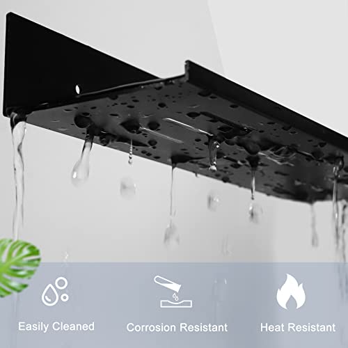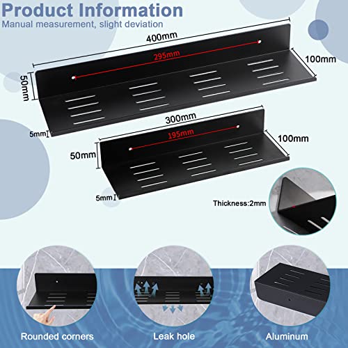 efuturetime - 2 × رف دش من ايفيوتشر تايم حائط معدني بدون ثقب للحمام لتعليق سلة الدش اسود مصنوع الالومنيوم الفضائي والمطبخ والشرفة 30 سم- 40 سم