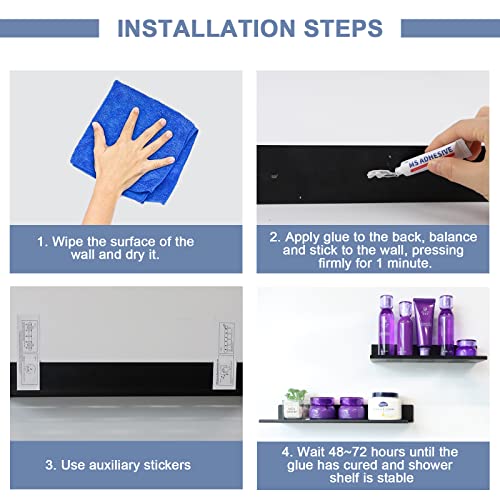 - تعليمات التركيب: يمكنك استخدام اللاصق المرفق والملصقات. ملاحظة: الغراء مناسب للجدران الصلبة المسطحة مثل الزجاج والخشب الصلب والمعدن والبلاط وما إلى ذلك. يرجى التحلي بالصبر بعد وضع اللاصق والانتظار 48-72 ساعة لضمان أن الرف آمن قبل وضع الأشياء. ولكن مع الجدران المطلية والجدران الجصية وجدران ورق الحائط، يوصى بحفر الثقوب.