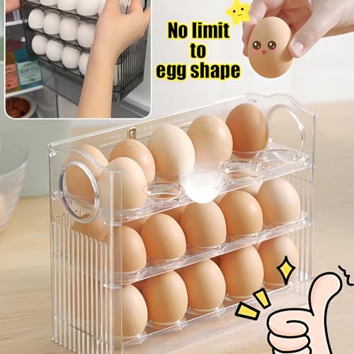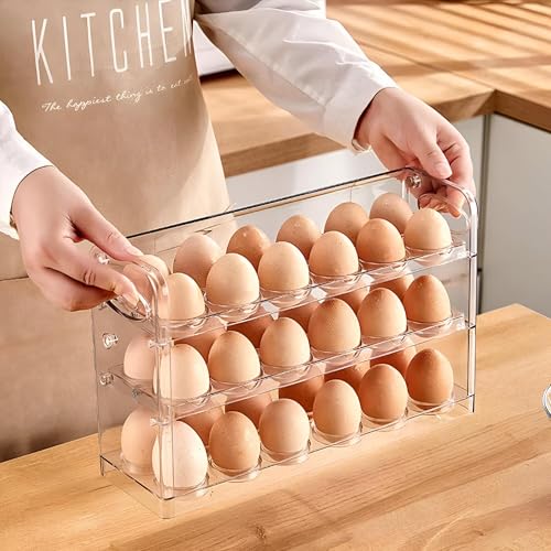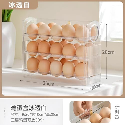 Generic - حامل بيض، منظم بيض شفاف للثلاجة بثلاث طبقات بسعة كبيرة تصل إلى 30 بيضة، يثبت على الباب الجانبي، من بلاستيك متين قابل لإعادة الاستخدام لحلول تخزين المطبخ الأنيقة، متعدد الألوان