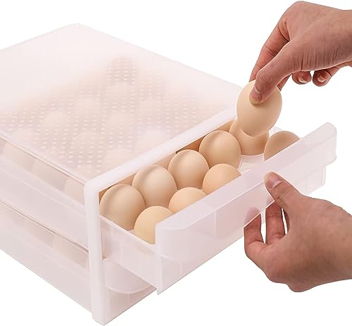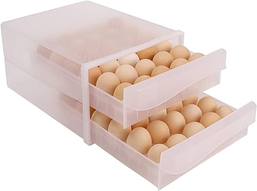 H-Home - حافظة بيض للثلاجة حامل شبكي لحمل 60 بيضة بدرجين لتخزين البيض منظم متعدد الطبقات الدجاج أو البط شفاف 1