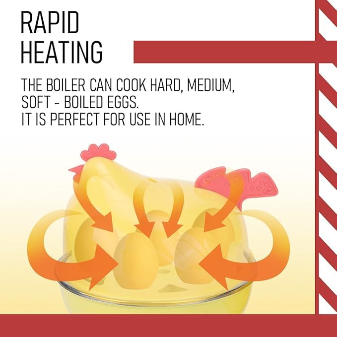 - تصميم عصري ومرح: تتميز حلة الضغط الكهربائية لسلق البيض هذه بتصميم فريد على شكل فراخ، مما يضيف لمسة ساحرة وملفتة للنظر إلى ديكور مطبخك.