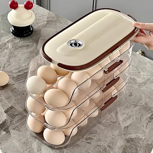 generic - موزع بيض للطعام - منظم بسعة كبيرة قابل للتكديس مع طبقات منزلقة، مثالي لتخزين الثلاجة والحفاظ على الطعام طازجًا