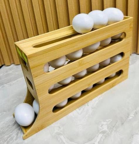 - مادة طبيعية: منظم بيض مصنوع من الخشب الطبيعي عالي الجودة يضيف لمسة جمالية دافئة إلى مطبخك