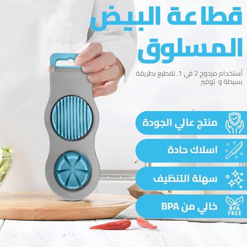 - قطاعة بيض متعددة الاستخدامات: قطّع البيض المسلوق بسهولة ودقة باستخدام قطاعة البيض متعددة الوظائف الخاصة بنا، وهي مثالية للسلطات والسندويشات ووضع الشرائح كزينة.