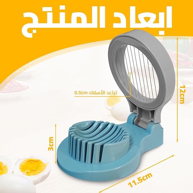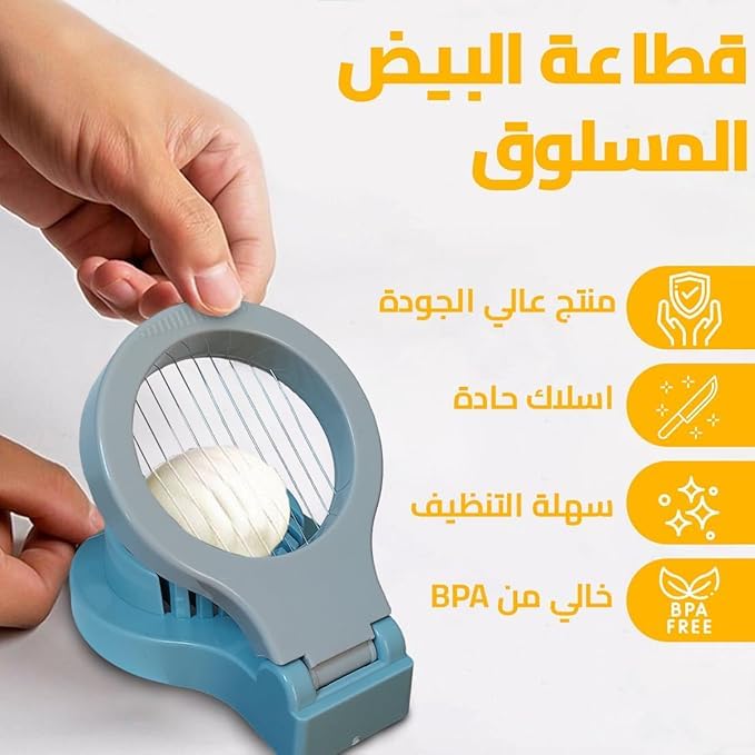- قطاعة بيض متعددة الاستخدامات: قطّع البيض المسلوق بسهولة ودقة باستخدام قطاعة البيض متعددة الوظائف الخاصة بنا، وهي مثالية للسلطات والسندويشات ووضع الشرائح كزينة.