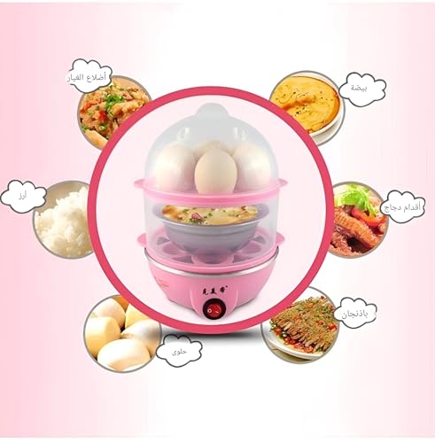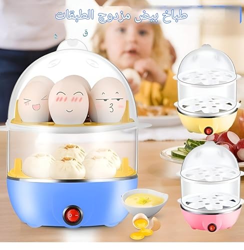 Generic - حلة طهي بالبخار - جهاز ذكي بطبقتين يتيح طهي البيض على مستويين في الوقت نفسه بالسلق أو بالبخار للحصول على فطور صحي وخيارات طهي متنوعة مع توفره بعدة ألوان