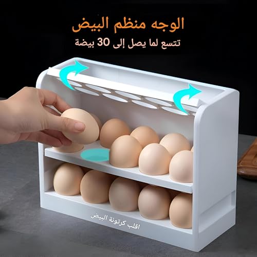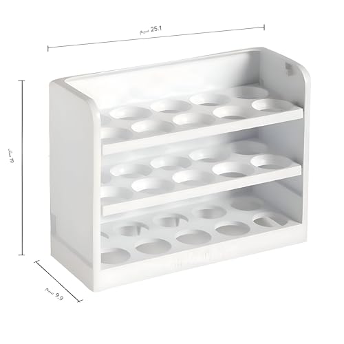 - 【مساحة كبيرة】مع حجم صغير 25 × 10 × 19.5 سم، صينية تخزين البيض ذات السعة الكبيرة هذه تحمل ما يصل إلى 30 بيضة، مع ثلاث طبقات، كل منها يحمل 10 بيضات. يزيد التصميم من مساحة الثلاجة ويتناسب تمامًا مع أرفف أو صواني باب الثلاجة.