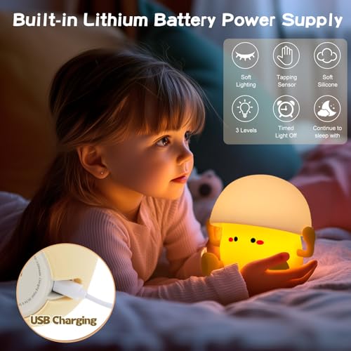 CECOMBINE - مصباح ليلي بتصميم صفار البيض، مصباح ليلي لطيف من السيليكون بتصميم صفار البيض للاطفال، مصباح ليد يعمل باللمس، مصباح محمول قابل لإعادة الشحن لغرفة الأطفال، مصباح بجانب السرير لتزيين طاولة غرفة النوم