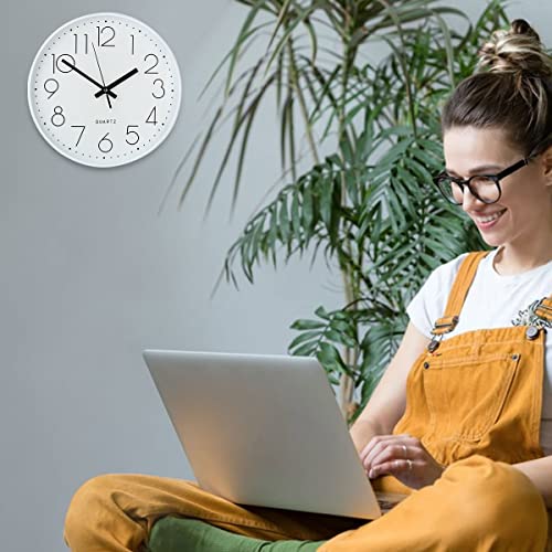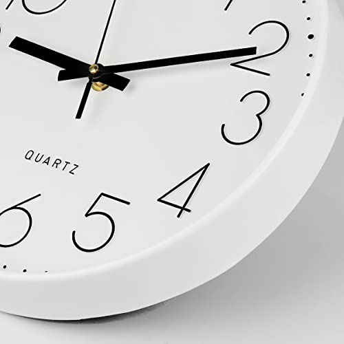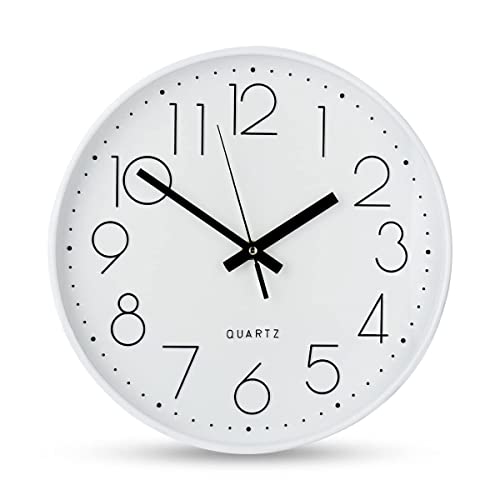 Egundo - ساعة حائط دائرية وبدون صوت تكتكة، بنظام الكوارتز التناظري، مصنوعة من المعدن بأرقام كبيرة، مناسبة لديكور غرفة المعيشة وغرفة النوم والمطبخ والمكتب من ايجوندو، مقاس 30.5 سم، لون أبيض