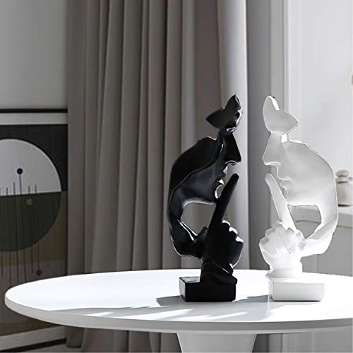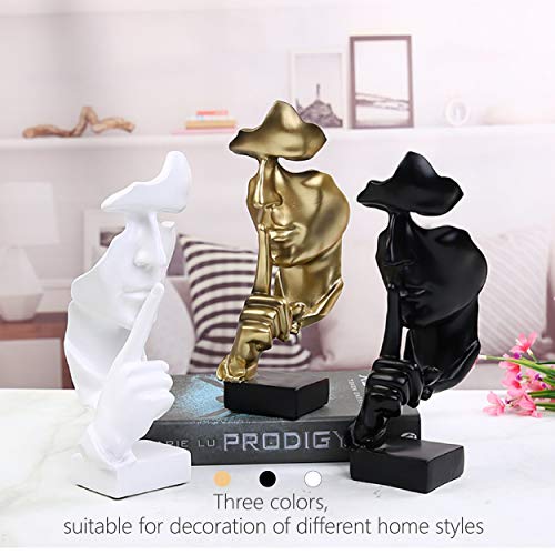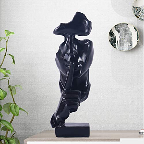 Eguoer - تمثال السكوت من ذهب من إيجوير، تمثال مفكر، تمثال حافظ على الصمت، منحوتات تجريدية ابداعية للرجال، تمثال ديكور للمكتب والمنزل هدية - أسود