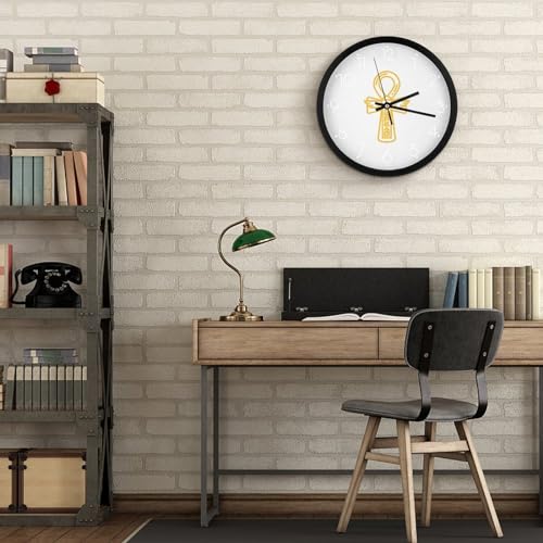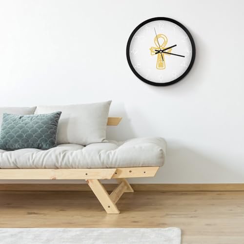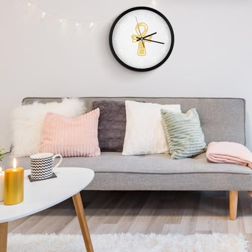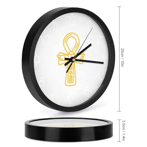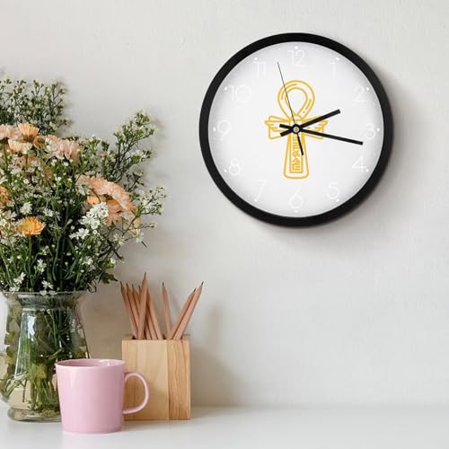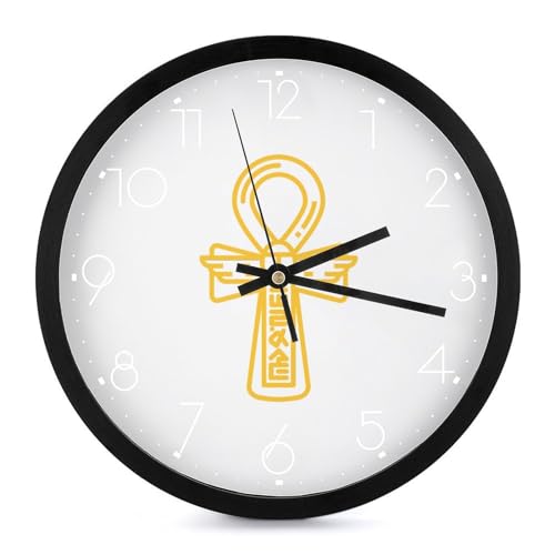 MHXYZHW - ساعة حائط ايجيبت عنخ صامتة بدون تكتكة 10 بوصة تعمل بالبطارية ساعة دائرية عصرية لديكور المنزل والمطبخ والمكتب، بلاستيك، نمط أسود