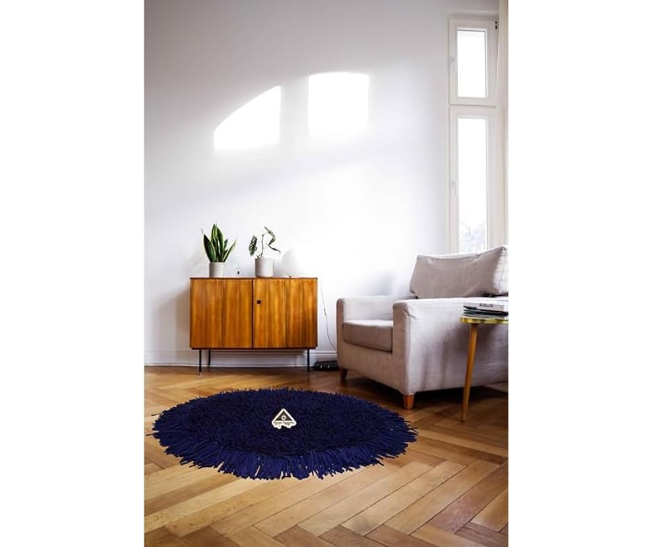 Egypt Antiques - سجادة دائرية شاج مصنوعة يدويا من القطن الطبيعي بنسبة 100% مضادة للانزلاق من ايجيبت انتكس، كحلي