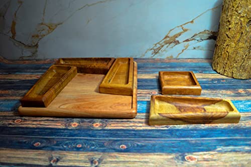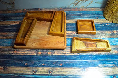 egypt antiques - طبق خشبي بتصميم مربع مصنوع يدويا لتناول الطعام أو التاسلي من ايجيبت انتيكيكس، لون طبيعي 100% معالج بزيت الزيتون