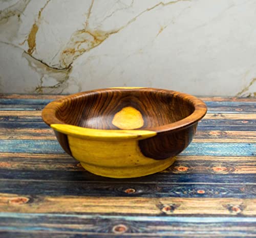 Egypt Antiques - طبق بحافة خارجية صناعة يدوية من الخشب الصحي الوان طبيعية 100% من قلب الشجرة 20 سم، عدد القطع: 8