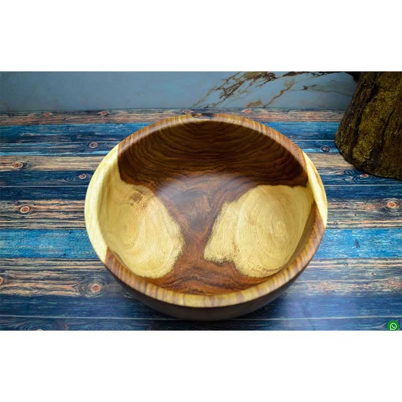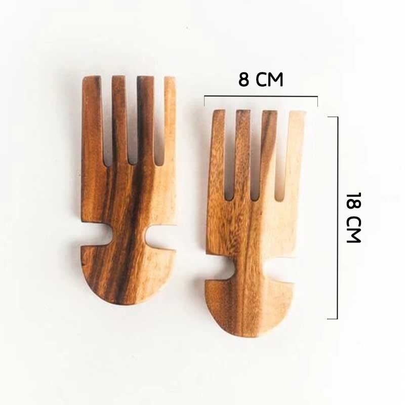 Egypt Antiques - طبق سلطة عميق مع 2 شوكة تقليب كبيرة من انتكس، خشب، بني