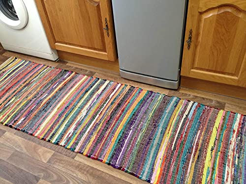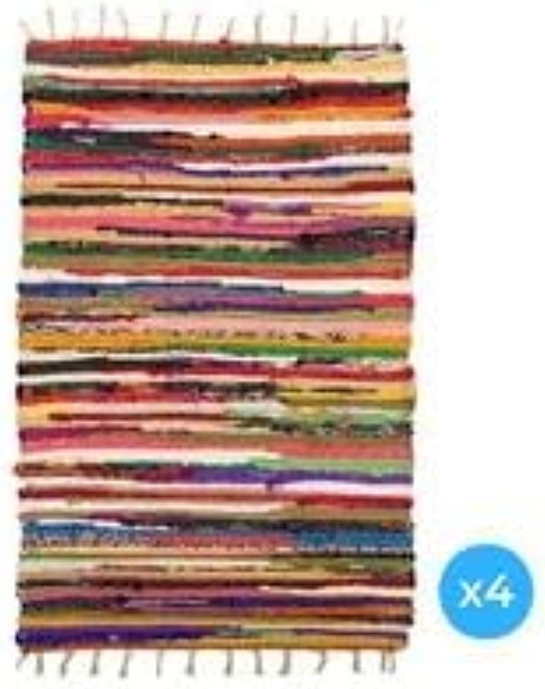 - سجادة كليم مصنوعة يدويا من ايجيبت انتيكس، 4 قطع - متعددة الألوان، خامة قطنية 70 سم × 2 متر للمطبخ والحمام والأماكن الخارجية