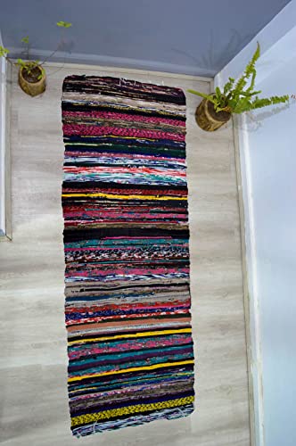 Egypt Antiques - سجادة كليم مصنوعة يدويا من ايجيبت انتيكس، 4 قطع - متعددة الألوان، خامة قطنية 70 سم × 2 متر للمطبخ والحمام والأماكن الخارجية
