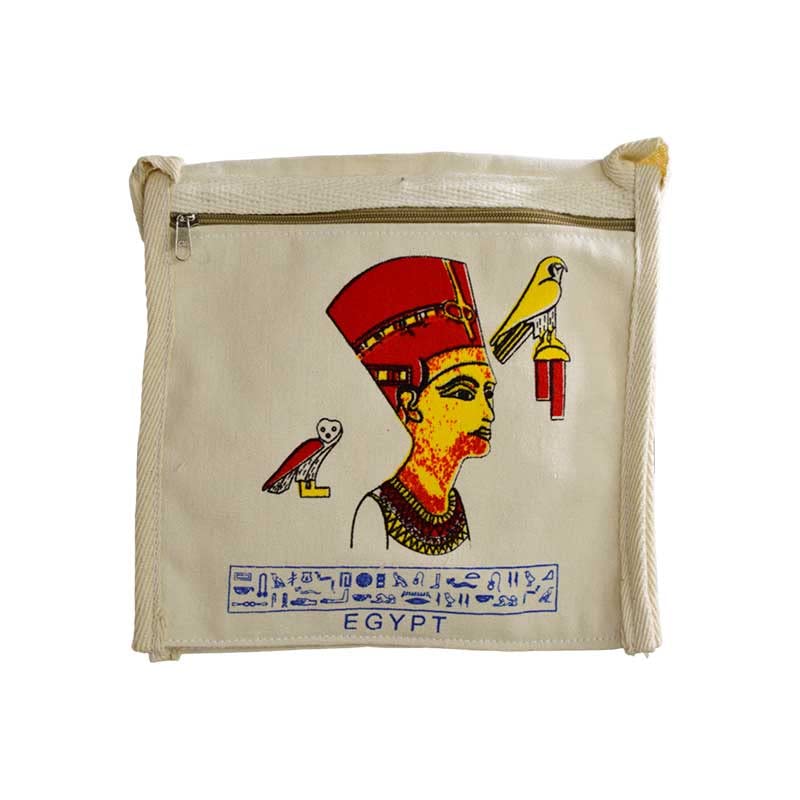 Egypt Antiques - شنطة كروس بطباعة نيفرتاري مصنوعة يدويًا 100% من قطن ايان من ايجيبت انتيكيكس