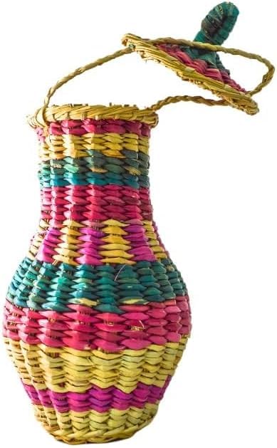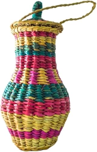 Egypt Antiques - سلة ديكور عزازة طبيعية مصنوعة يدويًا بغطاء من جريد النخل ايجيبت انتيكيس ارتفاع 45 سم × قطر 10 متعددة الألوان