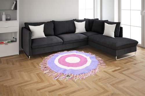 Egypt Antiques - سجادة دائرية مصنوعة يدويا من القطن الطبيعي من ايجيبت انتيكس، لون سماوي/ سماني/ بني